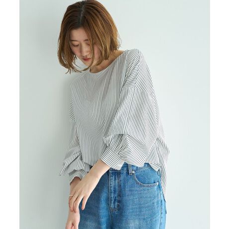 上質な落ち感素材を使用したとろみのある質感と、ゆったりとしたシルエットが魅力のブラウス。
