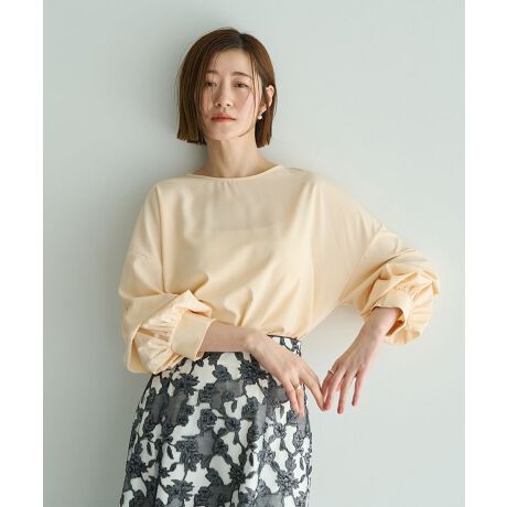 袖口はシャーリングで手首まわりをすっきり見せ、華やかさと上品さを両立します。