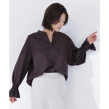 スキッパーデザインがポイントのブラウス。襟を少し抜くと、抜け感のある着こなしが完成します。キャンディスリーブとシャーリング仕様の袖口が華やかさをプラスし、ブラウジングで手首を見せても着られます。程よくゆったりとしたシルエットで、オフィスシーンから普段着まで幅広く着回せます。<素材>キレイな表面感の合繊ブロード素材を使用しています。<詳細>仕様・開閉なし裏地・なし透け感・なし / 光沢・なし / 伸縮性・なし生地の厚さ・普通 ※モデルの着用画像の場合、光の当たり具合により、実際の色味と異なって見えることがございます。色味は、商品単体の画像をご参照ください。