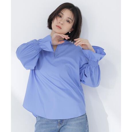 スキッパーデザインがポイントのブラウス。襟を少し抜くと、抜け感のある着こなしが完成します。キャンディスリーブとシャーリング仕様の袖口が華やかさをプラスし、ブラウジングで手首を見せても着られます。程よくゆったりとしたシルエットで、オフィスシーンから普段着まで幅広く着回せます。<素材>キレイな表面感の合繊ブロード素材を使用しています。<詳細>仕様・開閉なし裏地・なし透け感・なし / 光沢・なし / 伸縮性・なし生地の厚さ・普通 ※モデルの着用画像の場合、光の当たり具合により、実際の色味と異なって見えることがございます。色味は、商品単体の画像をご参照ください。