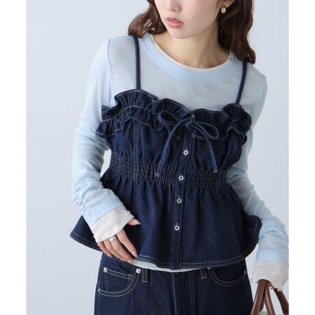 人気アイテムが新色を加えて再登場!胸元のギャザーフリルがポイントのデニムビスチェ。バスト下にシャーリングを施した、メリハリのあるシルエットになっています。前開きボタン仕様で、ボタンの留め方でスリット風に抜け感スタイルも楽しめます。インナーにロンTやシャツと合わせたり、ジャケットを羽織るのもおすすめ。季節に合わせたコーディネートができ、長いシーズン活躍します。ライトインディゴオーバーダイに加えて、新色グレーケミカルとワンウォッシュの3色展開です。※生地の加工による個体差、擦れやほつれなどのダメージ感のある箇所がありますが、こなれ感のある特徴としてお楽しみください。※モデルの着用画像の場合、光の当たり具合により、実際の色味と異なって見えることがございます。色味は、商品単体の画像をご参照ください。
