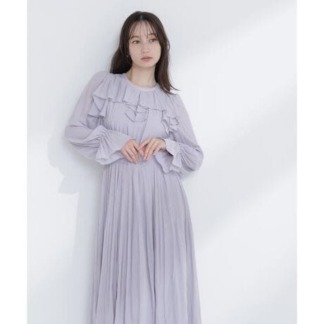 ラッフルデザインが顔まわりを華やかに演出してくれるワンピース。ウエストと袖にゴムを施し、自然なフィット感で着心地が良いです。プリーツ加工を入れたスカートが軽やかに揺れ、上品で女性らしい印象を叶えます。<素材>薄手で柔らかくラフな表情感のある生地を使用しています。<詳細>仕様・後ろボタン裏地・あり透け感・ややあり / 光沢・なし / 伸縮性・なし生地の厚さ・薄手※モデルの着用画像の場合、光の当たり具合により、実際の色味と異なって見えることがございます。色味は、商品単体の画像をご参照ください。