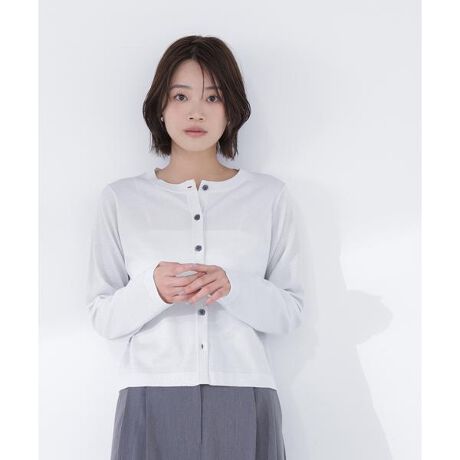 ベーシックで着回しやすいデザインのカーディガン。オフカラーのみ繊細なラメ糸を引きそろえ、さりげない華やかさをプラスしています。配色の貝調ボタンが上品で女性らしいアクセントになり、裾や袖口はリブで絞らず、ストンと落ちるシルエットです。スカートでもパンツでも合わせやすくておすすめです。<素材>ストレッチ糸を引きそろえた天竺編みで、整った表面感の着心地のニットです。<詳細>仕様・前ボタン裏地・なし透け感・なし / 光沢・なし / 伸縮性・あり生地の厚さ・普通※モデルの着用画像の場合、光の当たり具合により、実際の色味と異なって見えることがございます。色味は、商品単体の画像をご参照ください。