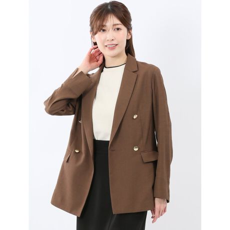 ふんわり軽い着心地で暑い時期も涼しく着ていただける、ブレザー風のダブルジャケット(テーラードカラー・2フラップポケット)です。前ボタンが2列になっているダブルブレスト、ゴールド調の大き目なボタン、袖口のスリットがポイント。シンプルなトップスの上に重ねるだけで、一気に新鮮な印象へとアップデートしてくれます。