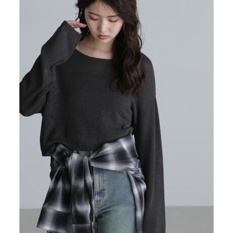 ゆったりとした身頃でリラクシーな抜け感がかわいい、からっとした風合いのニット。フロントはボートネック、バックスタイルは深めのUネックでヘルシーな印象です。ルーズな着心地ながら、肩先から共地リボンを付けてポイントにしつつ、肩からずり落ちないように仕上げています。デニム合わせでカジュアルにも、ティアードスカート合わせでフェミニンカジュアルなスタイリングもおすすめです。※モデルの着用画像の場合、光の当たり具合により、実際の色味と異なって見えることがございます。色味は、商品単体の画像をご参照ください。