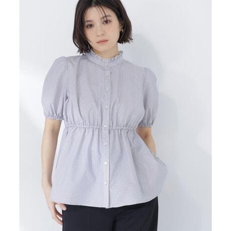 ボリュームスリーブが華やかさを添え、二の腕をさりげなくカバーしてくれるブラウス。ウエストはすっきりと、裾に向かって広がるペプラムシルエットで自然なメリハリを演出します。パンツにもスカートにも合わせやすく、オンにもオフシーンにも着ていただけます。<素材>ストライプ柄の上に小さなドット柄が重なった、表情豊かなデザイン生地を使用。<詳細>仕様・前ボタン裏地・なし透け感・なし / 光沢・なし / 伸縮性・なし生地の厚さ・普通※モデルの着用画像の場合、光の当たり具合により、実際の色味と異なって見えることがございます。色味は、商品単体の画像をご参照ください。
