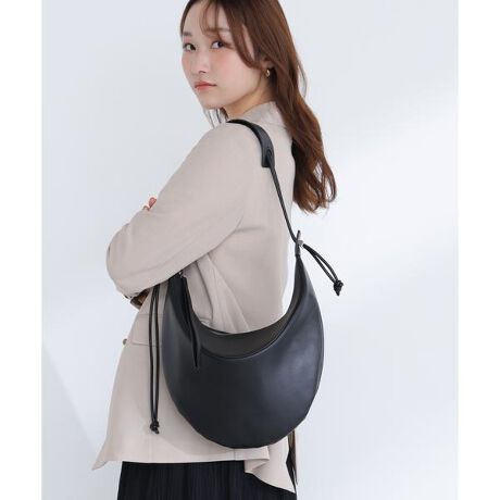 [型番:0176182300]体に沿うようなハーフムーンシルエットのショルダーバッグ。ストッパー付きショルダーストラップはスタイリングに合わせて長さ調節できます。※モデルの着用画像の場合、光の当たり具合により、実際の色味と異なって見えることがございます。色味は、商品単体の画像をご参照ください。