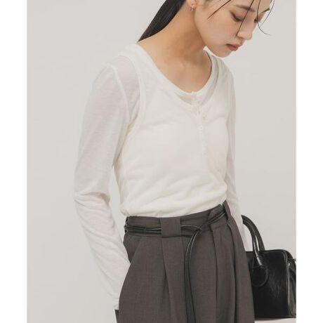 春らしいシアー感と、柔らかく着心地の良いカットソー素材を使用したレイヤードトップス。程よくコンパクトなサイジングで、自然とスタイルアップが叶います。セット使いはもちろん、別々でも着回しが可能。ボリュームのあるボトムと相性抜群になっており、落ち着きのあるカラーバリエーションもポイントです。