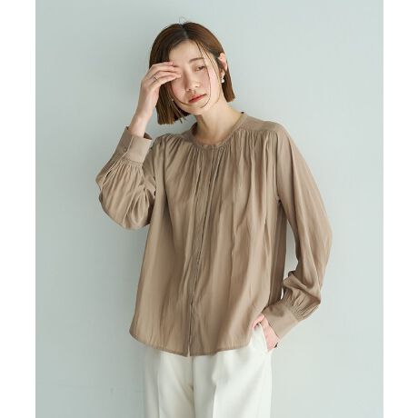 繊細なギャザーが生み出す柔らかな陰影が、装いに奥行きを与える一枚です。