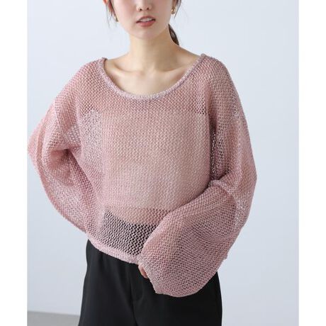 光沢のあるカラッとしたメッシュ編みに、小さ目なスパンコールでシャイニーさをミックスしたニット。シンプルながらも華やかな一枚です。ゆとりがある身頃はルーズな抜け感がでて、リラクシーな着こなしを楽しめます。シアーインナーや薄手のニットカットソーとのレイヤードスタイルや、カップ付きベアキャミソールと合わせたヘルシーな肌見せコーデもおすすめです。※モデルの着用画像の場合、光の当たり具合により、実際の色味と異なって見えることがございます。色味は、商品単体の画像をご参照ください。