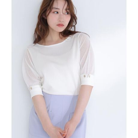 袖をシアーな編地で切り替えた、女性らしく軽やかな印象と抜け感を演出してくれるデザインニット。袖口カフスにあしらった金属ハトメがさりげないアクセントになり、一枚で着映えします。デイリーはもちろん、通勤などのキレイめスタイルにも取り入れやすいアイテムです。<素材>身頃はキレイなハイゲージ天竺素材、袖はシアーな天竺編地を使用しています。<詳細>仕様・開閉なし裏地・なし透け感・ややあり / 光沢・なし / 伸縮性・あり生地の厚さ・普通※モデルの着用画像の場合、光の当たり具合により、実際の色味と異なって見えることがございます。色味は、商品単体の画像をご参照ください。