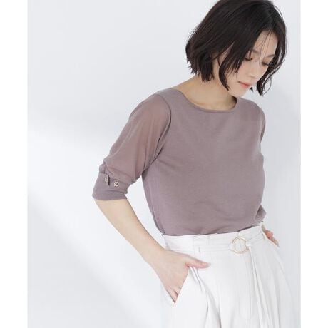 袖をシアーな編地で切り替えた、女性らしく軽やかな印象と抜け感を演出してくれるデザインニット。袖口カフスにあしらった金属ハトメがさりげないアクセントになり、一枚で着映えします。デイリーはもちろん、通勤などのキレイめスタイルにも取り入れやすいアイテムです。<素材>身頃はキレイなハイゲージ天竺素材、袖はシアーな天竺編地を使用しています。<詳細>仕様・開閉なし裏地・なし透け感・ややあり / 光沢・なし / 伸縮性・あり生地の厚さ・普通※モデルの着用画像の場合、光の当たり具合により、実際の色味と異なって見えることがございます。色味は、商品単体の画像をご参照ください。