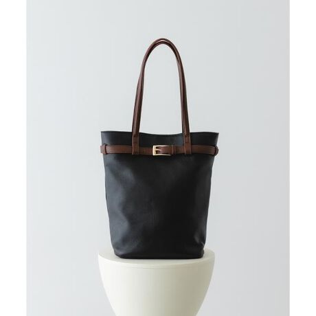 フロントにあしらわれたベルトとゴールドのバックルが、全体を上品に引き締めるアクセント。 持ち手は肩掛けしやすい絶妙な長さに設計されており、重い荷物もしっかりと支えてくれます。 マチが広くポーチやお弁当などのかさばる荷物も収納可能。