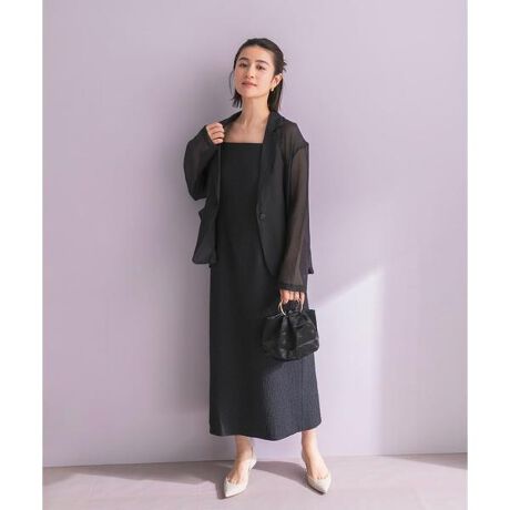ワンピースには、表面の凹凸が美しい日本製のジャガード生地を贅沢に使用し、身体のラインを拾いすぎない程よい膨らみのある素材が、安心感と上品な佇まいを両立します。計算されたダーツ使いにより、すっきりと見えるのに窮屈さを感じさせないシルエットを実現。 セットのシアージャケットを羽織れば、ふんわりとした透け感が重なり、洗練された抜け感が生まれます。 肌を優しく包み込む軽やかな素材使いが、大人の余裕を感じさせるエレガントさをプラス。2ピース仕様のため、それぞれ単体でデイリーな着こなしに活用できるのも魅力です。 シアージャケットは、夏場の冷房対策や日差し除けとしてカジュアルな装いに羽織るのもおすすめ。 特別な日のオケージョンシーンから、日常のお出かけまで、幅広いシーンで知的なスタイルを叶えてくれます。