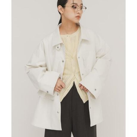 大きなポケットディテールが特徴的なジャケット。オーバーサイズに仕上げており、メンズライクな印象ですが、両サイドのファスナーを開くとテントラインのシルエットに変わります。首周りもスナップ釦が設定されているので、着こなしによって留めていただくのもおすすめ。大人カジュアルコーデにぴったりな1着です。