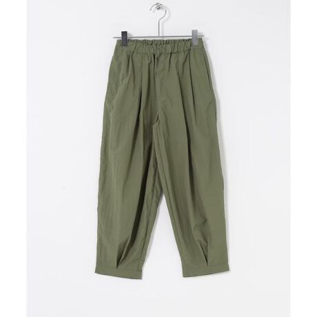 人気の撥水タックワイドパンツがナイロン100%素材にリニューアルし、より軽くさらっとした履き心地で登場。撥水加工を施しているので、ちょっとした雨や汚れも気になりにくくデイリー使いにぴったりです。軽量ながら程よくハリがある素材感でキレイ目なシルエットをキープし、裾にかけてすぼまったデザインで足さばき良く穿けるのが魅力。ウエストは総ゴム仕様でお子様でも着脱簡単にしていただけます。KHAKIとD.NAVYの2色展開で、どんなスタイルにも合わせやすくシーズンレスに着回しの効くアイテムです。