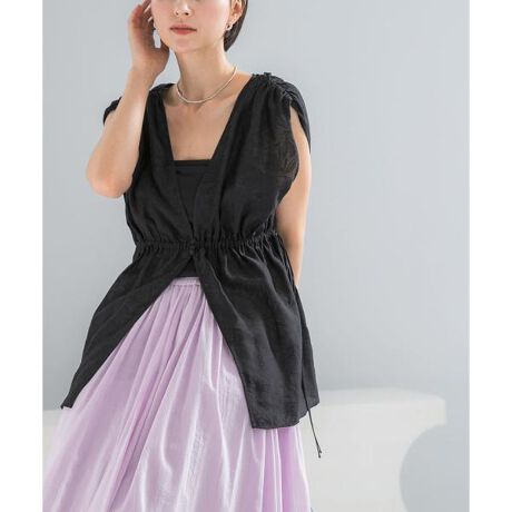 ボタニカル柄をあしらったセミシアージャガード素材が、繊細で涼やかなシーズンムードを演出。 ジャガード織り特有の奥行きのある生地感が、大人の装いにふさわしい特別な存在感を放ちます。ウエストにギャザーを寄せたペプラムシルエットが、女性らしく柔らかなラインを描き、 ウエストは総ゴム仕様になっており心地よいフィット感と愛らしいデザインを両立しました。 別布のサテンリボンがさりげないアクセントとなり、繊細なディテールの中に知的な抜け感をプラスします。 お手持ちのワードローブにプラスするだけで、スタイリングの幅をぐっと広げてくれる心強い一着。
