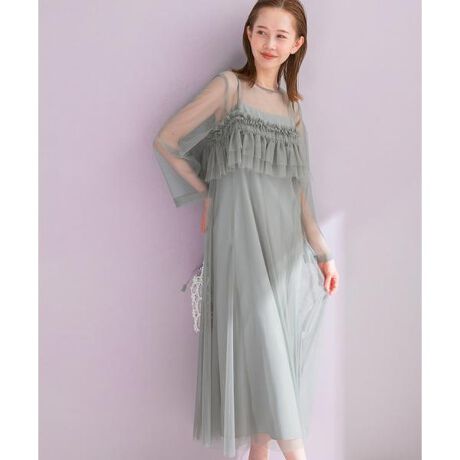 繊細なハリ感と自然な落ち感のあるチュールが、空気を含んだような美しい揺れを演出してくれるドレスが登場。 ボリュームを持たせたシルエットながら、素材の透明感によって重くならず、華やかな印象を与えてくれます。付属のチュールビスチェを重ねれば、特別な日にふさわしい奥行きのある装いに。 インナーワンピースは一枚でも着用可能なキャミソールタイプで、シーンに合わせた着こなしが広がります。 日常のスタイルにチュールのエッセンスを加えることで、知的な遊び心のあるドレスアップを叶えます。チュールビスチェをお手持ちのカットソーに重ねて、カジュアルな装いをアップデートするのもおすすめ。 ワンピースの下にデニムを合わせたレイヤードスタイルなら、こなれたデイリースタイルが完成します。 キャミワンピースにシャツをさらりと羽織るなど、アイデア次第で多彩な表情を楽しめる一着。