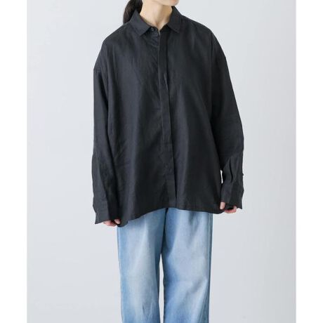 シンプルで着まわしがに便利なアイテムをご紹介します。ボックスシルエットが新鮮な表情のレギュラーカラーシャツ。身幅はゆったりとしていて、体型をカバーしつつ着るだけでこなれ感が生まれるデザイン。生地はしなやかでハリがあるリネンを使用しています。上半身のラインを拾いにくくスッキリとした印象に。シンプルにそのままではもちろんベストとの組み合わせもおすすめです。釦を少し開けて着ると抜けた雰囲気が増しますよ。同素材で他の商品もご用意しています。