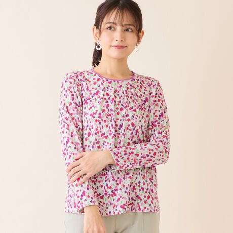 ジャケットやコートのインナーに着まわせ、コーディネートに色どりを添えてくれる柄トップス。