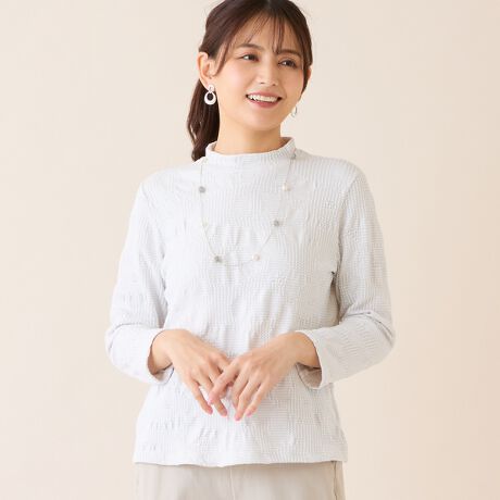 シャーリングによる表情感が特徴で、プリントカットソーとは違う上質感があります。