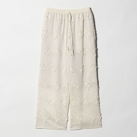 愛らしい花柄刺繍と涼やかな印象で春夏シーズンにぴったりなシアーパンツ。