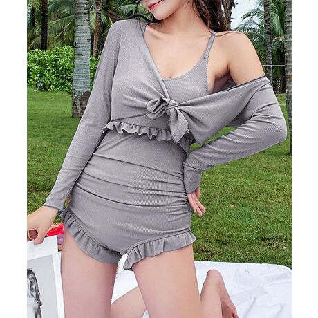 フリルポイントのワンピース水着×カーディガンの2点セットアップ。