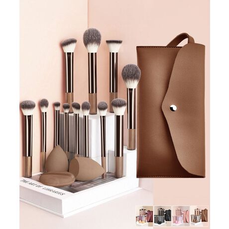プロ仕様のメイクブラシ12本にスポンジ&パフ、専用収納ケースが付いたフルメイク対応セット。
