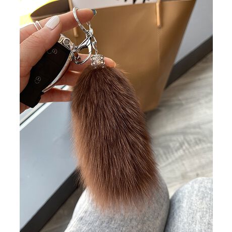 ふわふわのしっぽデザインが特徴のバッグチャームキーホルダー。