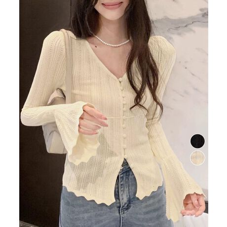 透かし編みニットフレア袖サマーニット春服