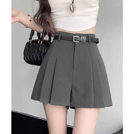 ベルト付プリーツショートパンツレディース