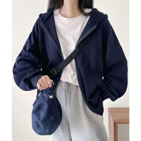 フード付きの上下開きファスナースウェットアウター。