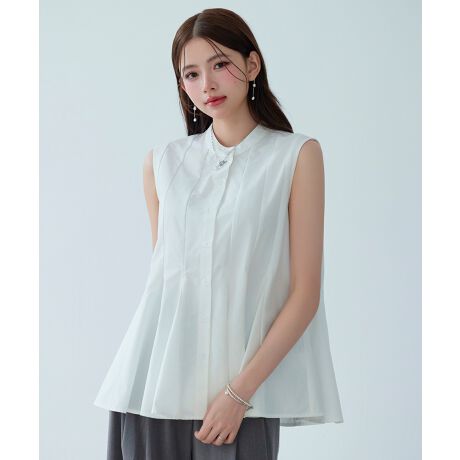 上品なフレアシルエットのノースリーブシャツブラウス。