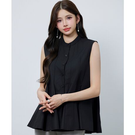 上品なフレアシルエットのノースリーブシャツブラウス。