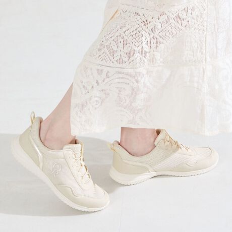 ハンズフリー仕様で手を使わずにさっと履くことができ、メッシュ生地で軽やかな印象に。
