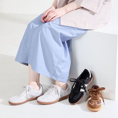 トレンド継続中のジャーマントレーナーにフリルデザインを施したスニーカー。