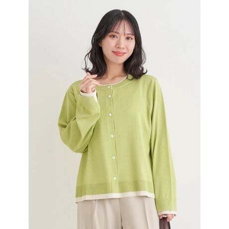 配色デザインがアクセントになった今季トレンドのクルーネックカーディガン