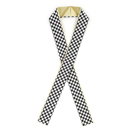 シンプルな市松格子の意匠で、裏面は金色の無地のリバーシブルとなっており、衿の見せ方を替えて四通りの使い方ができます。