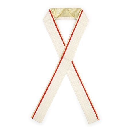 煌めく糸が織り込まれた千鳥格子の地模様に単色、内側に金無地のリバーシブルとなっており、衿の内側と外側の見せ方を替えて4通りの使い方ができます。