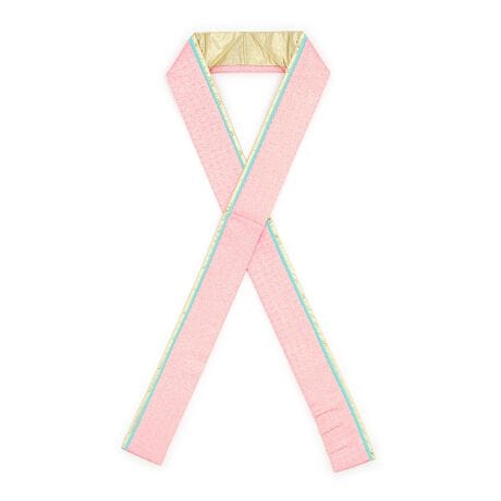 煌めく糸が織り込まれた千鳥格子の地模様に単色、内側に金無地のリバーシブルとなっており、衿の内側と外側の見せ方を替えて4通りの使い方ができます。