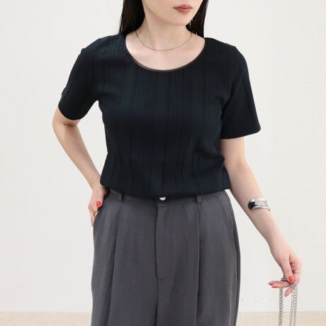 ・衿ぐりにシアー素材を挟み込んだデザイン