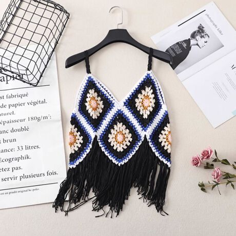 -ボヘミアンな雰囲気漂うかぎ針編みのキャミソールです。