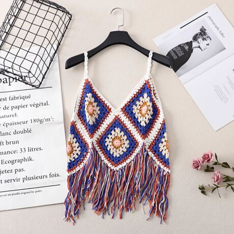 -ボヘミアンな雰囲気漂うかぎ針編みのキャミソールです。