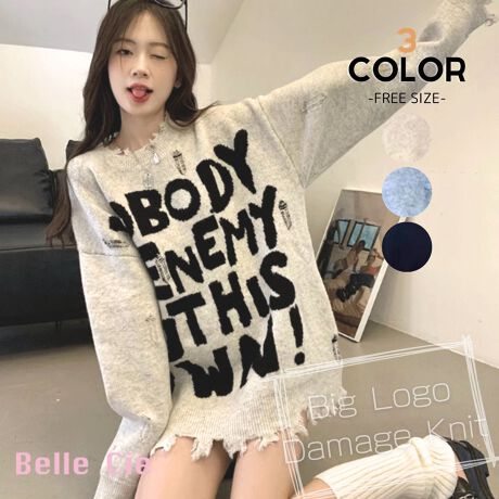 【ビッグロゴダメージニットトップス】