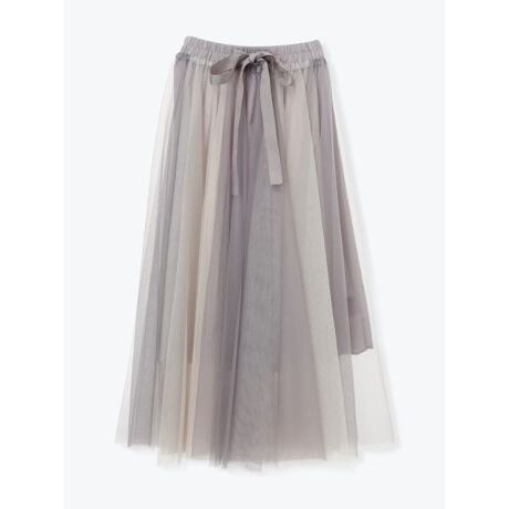 配色チュールウエストリボンロングスカート