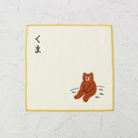 「ニューレトロ」シリーズのユニークな柄が刺繍されたハンドタオル。