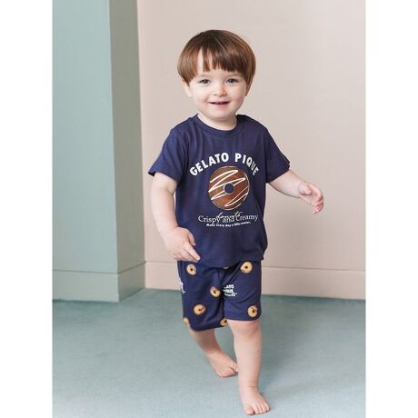 プレーンドーナツとチョコレートコーティングドーナツを柄プリントで表現した、POPでカジュアルなBABYハーフパンツです。春からの季節にうれしいなめらかな接触冷感のレーヨンを使用し、おしゃれと機能性を両立。短すぎない丈感で安心感のあるはき心地です。同シリーズのTシャツを合わせたり、HOMMEやKIDSサイズとのリンク・コーディネートもお楽しみください。