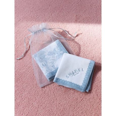 コットン100%のふっくらと柔らかいタオルを使用し、オーガンジーの巾着袋に入れてお届けします。