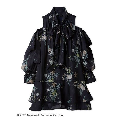 The New York Botanical Garden の希少本コレクションより厳選したボタニカルアートを組み合わせたSNIDELオリジナルプリントでお作りした、上品な肩見せデザインが叶う、フェミニンなミニワンピースです。