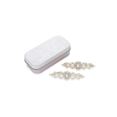 ビジューがきらめく2本のヘアピンを、専用のオリジナル缶にセットしたプチ・ギフトにぴったりなアイテムです。